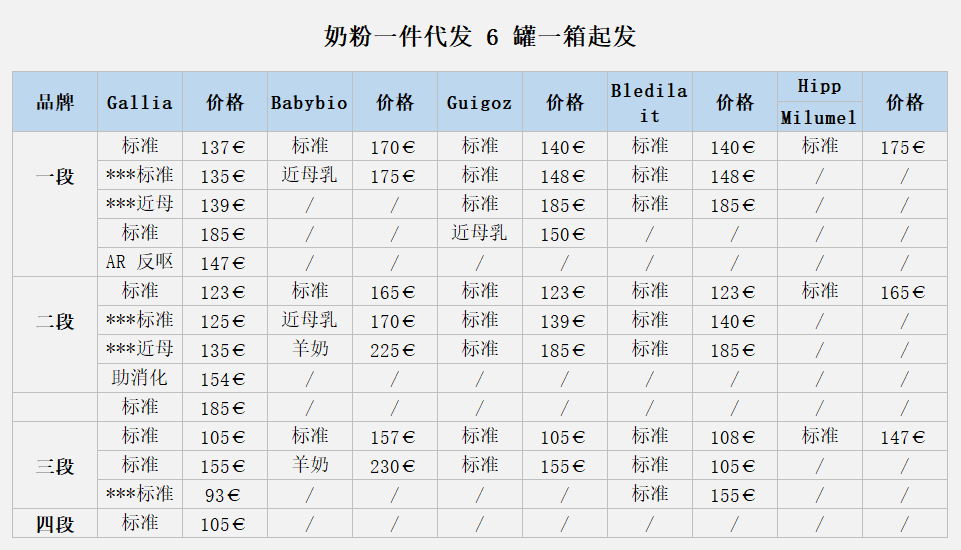 Colimonde同时提供奶粉一键代发服务,价格参考如下: